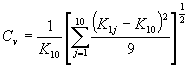 和十次測(cè)讀值K1j的平均值K10及其相對(duì)標(biāo)準(zhǔn)偏差Cv