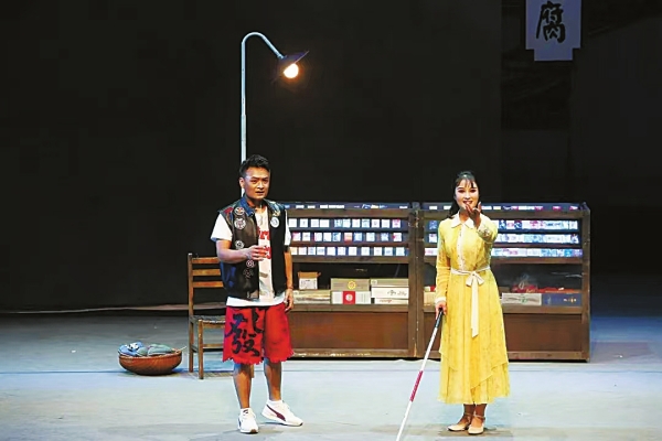 《一盞攤燈》這部作品聚焦性強,篇幅精煉,場景也相對集中,它沒有復雜的敘事和架構,僅通過一個相對簡潔的故事,即讓善惡的博弈在方寸舞臺之上激烈碰撞,最終引發觀眾對自我、對社會產生深刻反思。在人物的選擇上也非常貼近生活,一個是雙目失明卻自食其力的貨攤老板亮亮,一個是身體健全卻游手好閑的男青年劉小毛,既沒有遙不可及的英雄,也沒有徹頭徹尾的惡魔。劇情設置的精巧在于創作者將故事濃縮在小貨攤這個單一空間和較短的時間內,剝離了無關情節,將焦點鎖定在主要人物的選擇和沖突上。