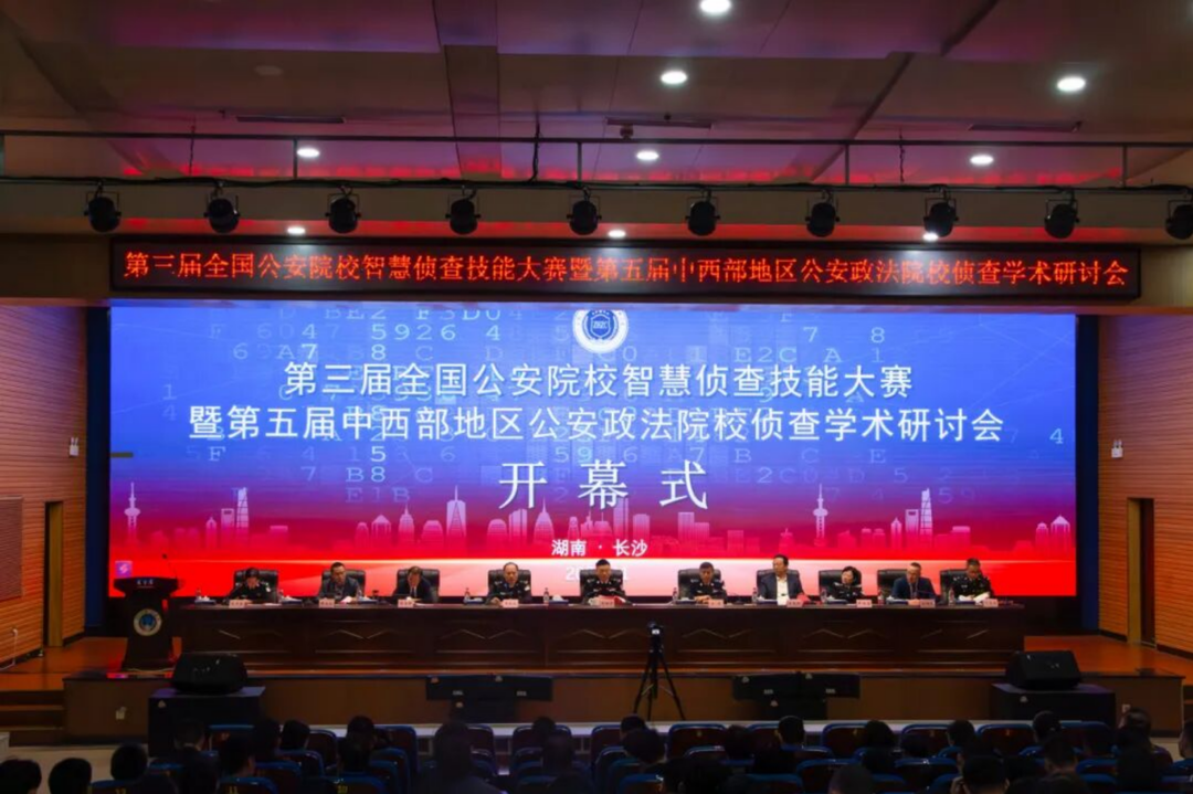 賽會由公安院校智慧偵查技能大賽組委會、中西部地區公安政法院校偵查學術研討會、湖南省公安廳指導,湖南警察學院主辦。來自全國26所公安院校的百余位專家學者和49支學警隊伍齊聚星城長沙,“礪劍”刑偵尖兵,“論道”智慧偵查。