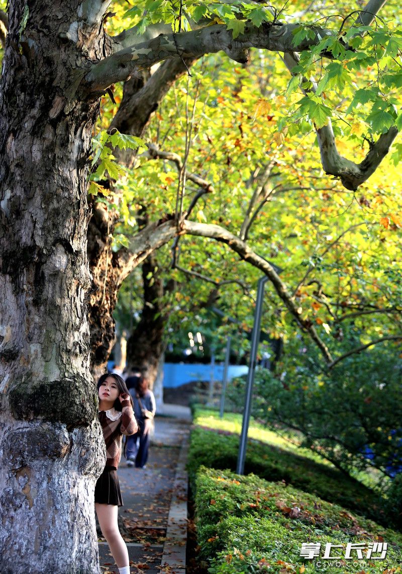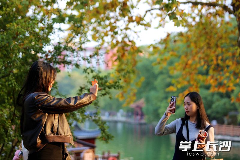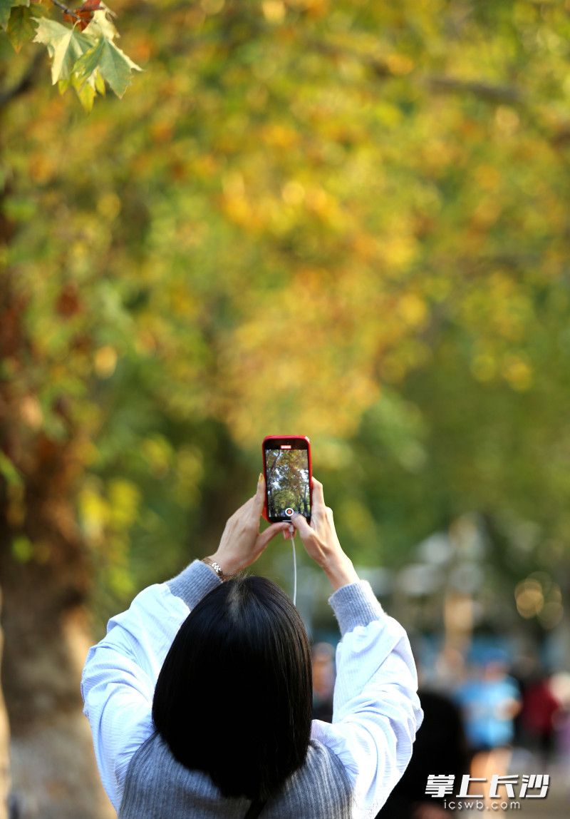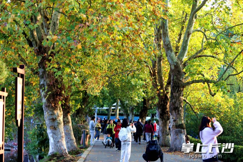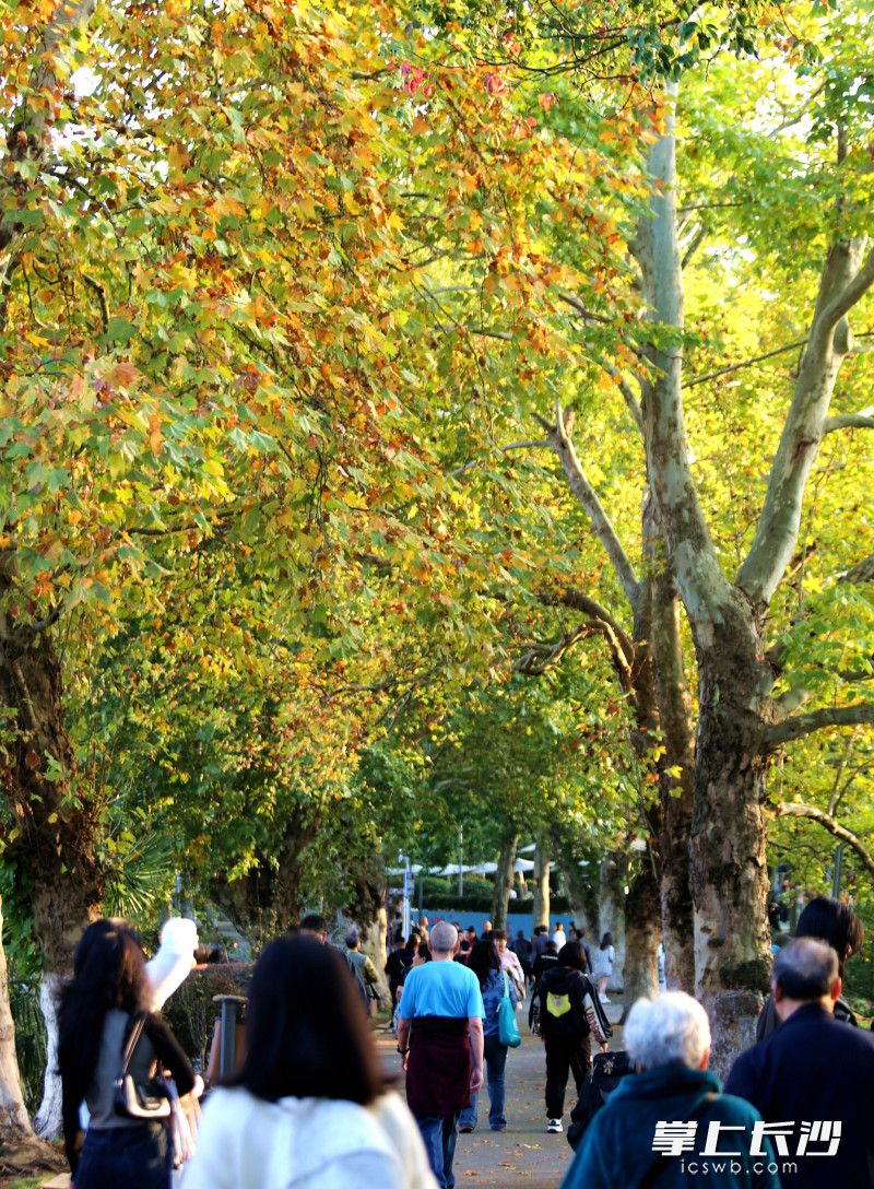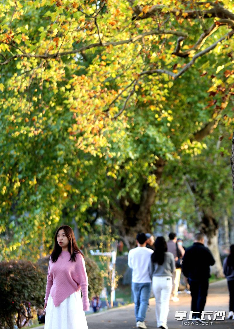 長沙晚報掌上長沙11月4日訊(全媒體記者 賀文兵)4日傍晚,湖南烈士公園“楓情大道”迎來打卡潮。自“霜降”節氣后,公園內楓葉漸由青轉黃,落日余暉灑落林間,黃葉與晚霞相映成趣。不少年輕人駐足于此,以黃葉為景定格美好,開啟秋天賞楓打卡好時光。