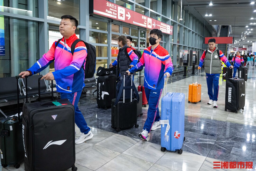 樊振東隨上海乒乓球隊抵達澳門。(新華社圖)