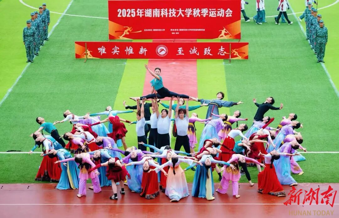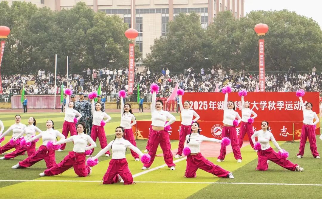 在湖南科技大學的運動場上,則上演了一曲多元交融的青春交響。啦啦操活潑飛揚,迷彩表演引爆全場,體育舞蹈將優雅與力量完美交融。整場表演既有傳統文化的深厚底蘊,又不乏現代流行的激情表達。