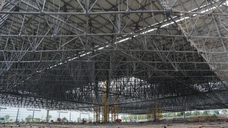 (項目屋蓋鋼結構提升中。項目部供圖)
