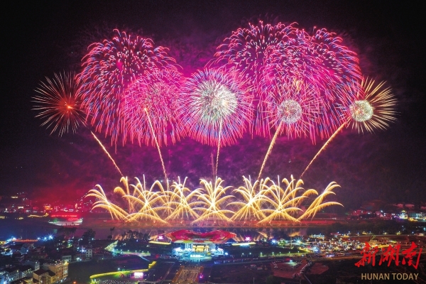 10月24日晚,瀏陽天空劇院上空焰火璀璨。鄧霞林 攝(湖南圖片庫)