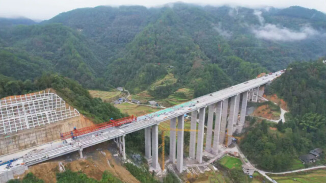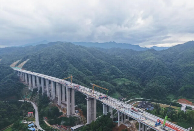 華聲在線11月7日訊(全媒體記者 孟姣燕 見習記者 陳娟 通訊員 王茜茜)今天,隨著刀背沖大橋梁板順利架設完成,G7221衡南高速城步至龍勝(湘桂界)段貫通,為年底全線建成通車奠定堅實基礎。