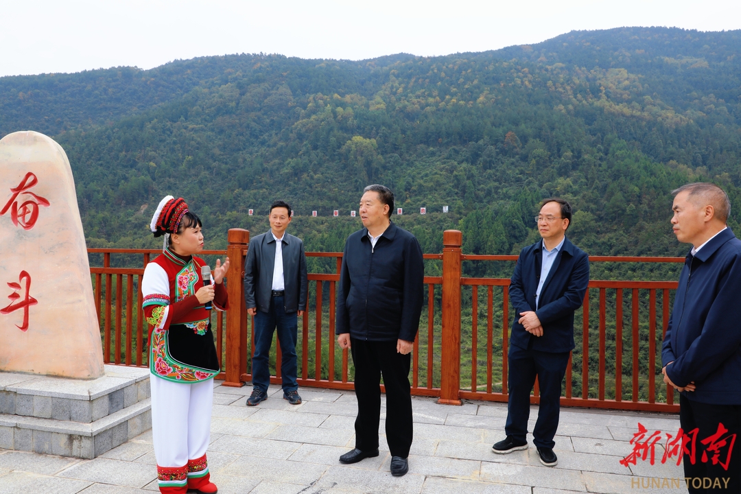 11月4日至7日,省政協主席毛萬春率隊在張家界市宣講調研。圖為毛萬春在七十二奇樓調研。