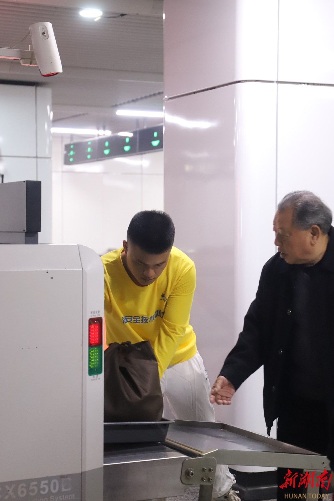“這些學(xué)生伢子真好!有他們幫忙,沒那么手忙腳亂了?!贝髮W(xué)生義警們幫帶著大包小包的張奶奶從容過安檢,她笑著豎起了大拇指。
