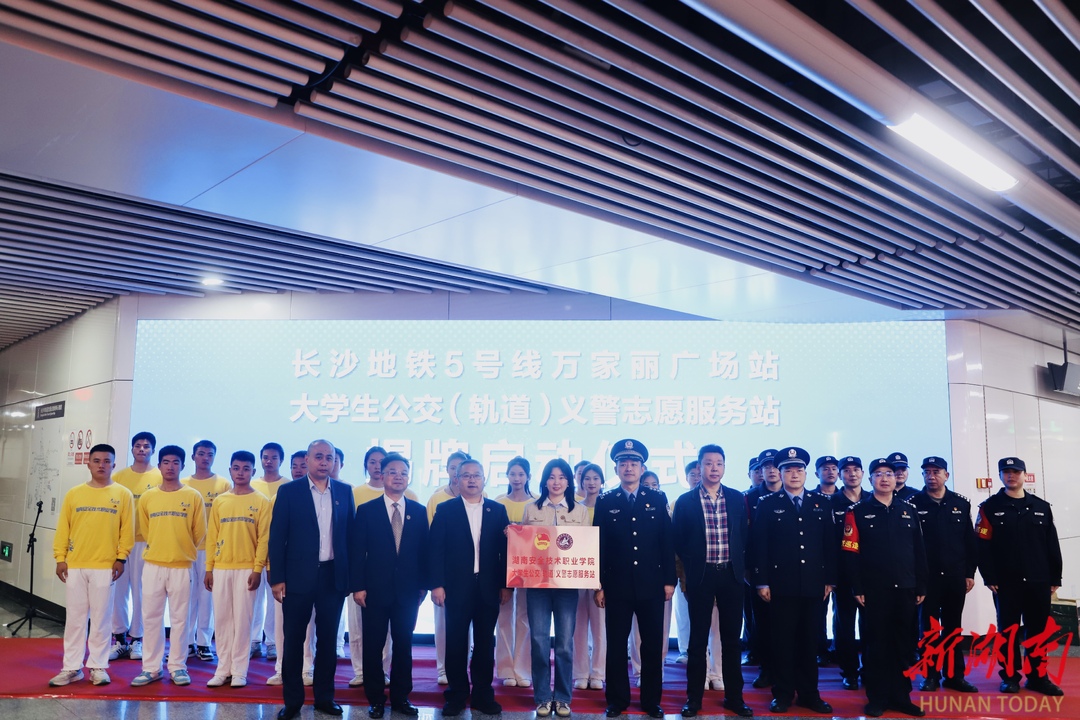 長沙首個(gè)大學(xué)生公交(軌道)義警志愿服務(wù)站揭牌啟動(dòng)。通訊員 攝