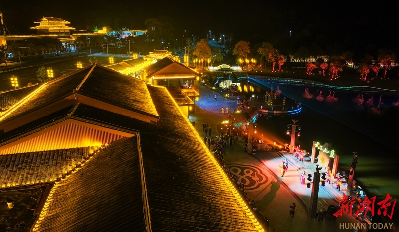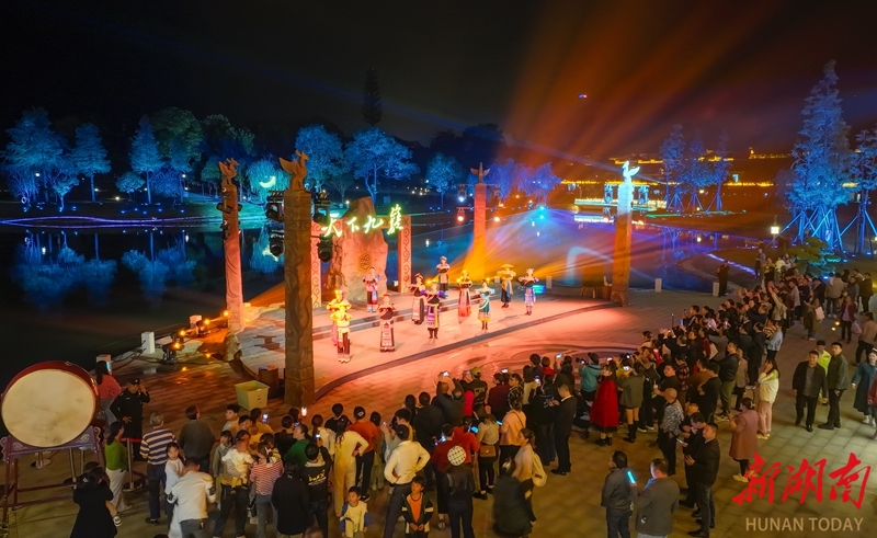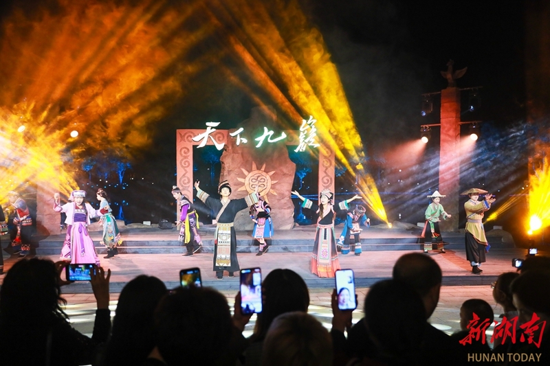 11月7日晚,寧遠縣九嶷山景區(qū)南風集,游客在觀看《天下九嶷》大型實景演藝表演。近年來,該縣結合當地以舜文化為核心的特色旅游資源,圍繞“食、游、購、娛”等主題,打造文藝演出、特色夜市等多元化文旅場景,通過科技手段創(chuàng)新演繹傳統(tǒng)文化,促進文旅產業(yè)深度融合發(fā)展。劉貴雄 陳祉凝 攝影報道(湖南圖片庫)
