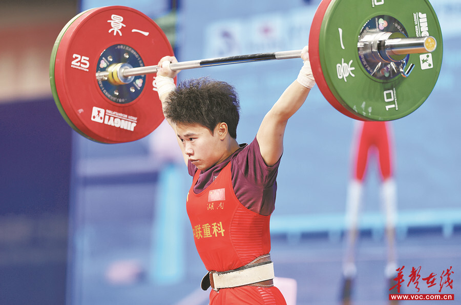 11月10日晚,在東莞舉行的第十五屆全運會舉重女子49公斤級決賽中,奧運會“雙冠王”侯志慧以抓舉93公斤、挺舉110公斤、總成績203公斤的成績奪冠,為體育湘軍拿下開幕后首塊金牌。這枚來之不易的金牌,也讓侯志慧在28歲的年齡成就了全運會三連冠。華聲在線全媒體記者 傅聰 攝