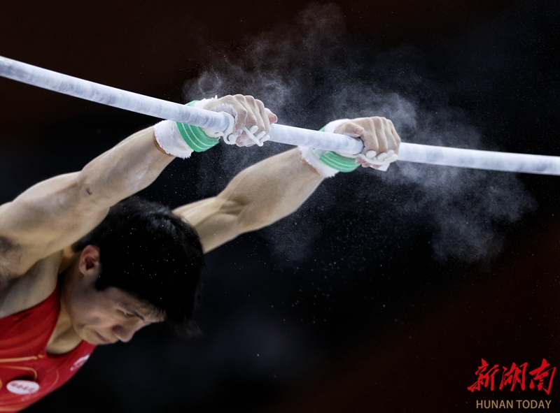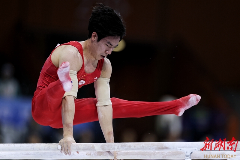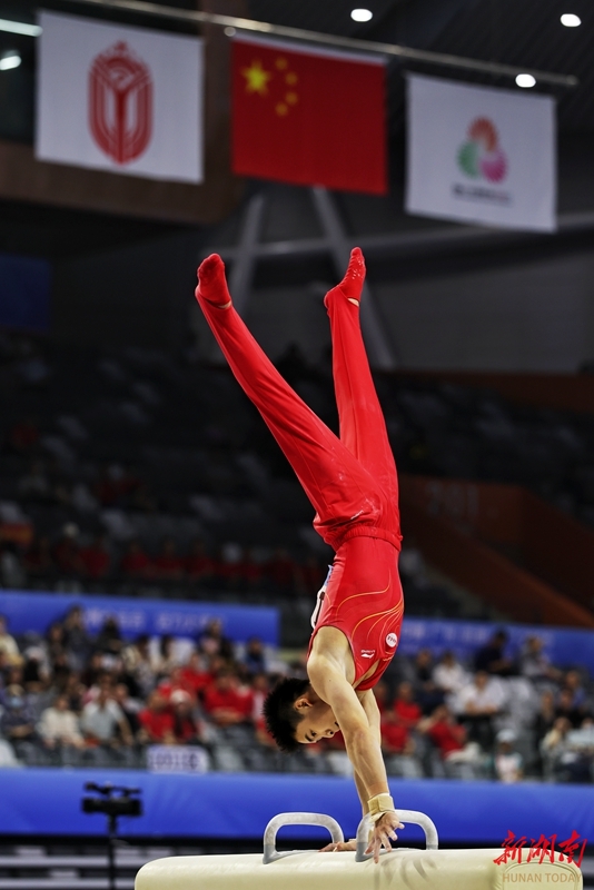 11月12日晚,第十五屆全運會體操男團決賽在廣東肇慶上演巔峰對決。最終,由張博恒領銜的湖南高速體操隊以327.024的總分斬獲一枚銀牌,江蘇隊以1.933分的優勢實現衛冕。 華聲在線全媒體記者 傅聰 攝
